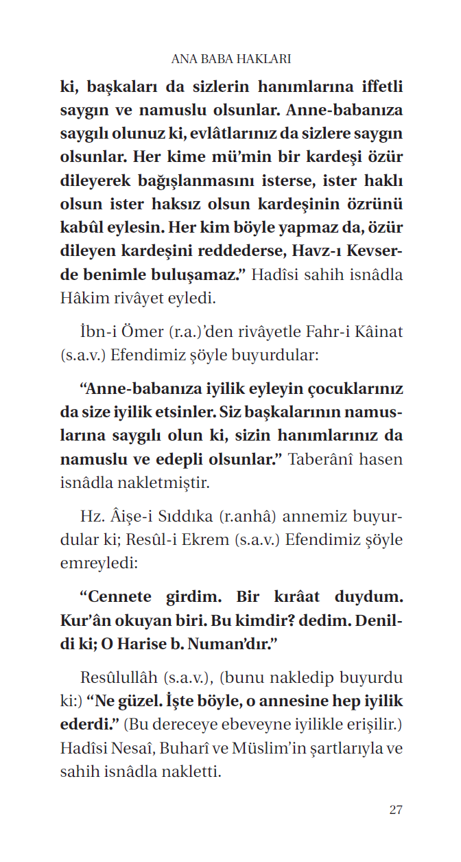 Allah’ın kahr u gazabı da ebeveynin kahr u gazabındadır. (Hadis-i Şerif, Buhari)