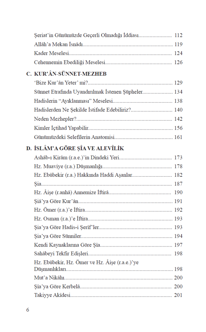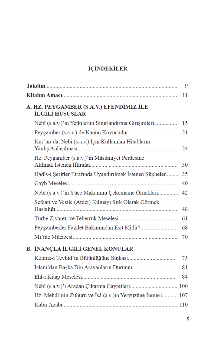 Kitapta ayrıca Kader, Kabir Azâbı, Türbe Ziyareti, Kadın Hakları, Recm, Faiz, Organ Nakli, Mûsiki, Namazların Birleştirilmesi, Cuma Namazı, Kadınların Özel Halleri gibi pek çok güncel mesele, İslâmî zâviyeden incelenmiştir.