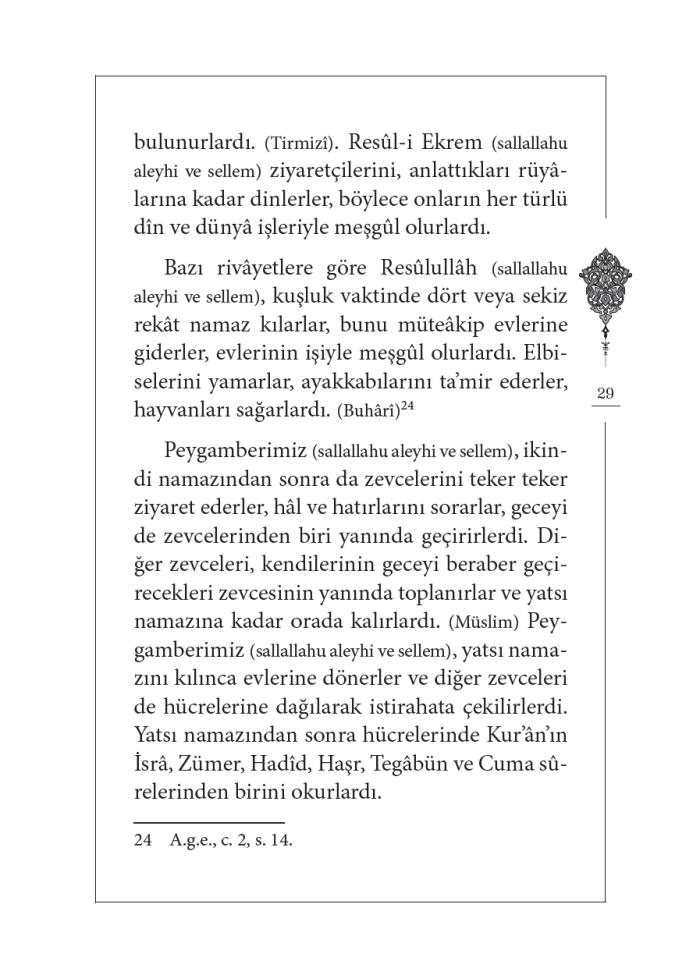 Resul-i Ekrem (s.a.v)’in, boyları, azaları, ve endamları birbirlerine gayet mütenasipti. Uzuna yakın orta boylu idiler. Fakat halk arasında mehabetlerinden herkesten uzun görünürlerdi. Alınları açık ve geniş, kaşları hilal biçiminde ve birbirlerine yakın fakat çatık değildi. Gözleri kara, kirpikleri siyah ve uzundu. Terledikleri zaman terleri mübarek yüzlerinden inci taneleri gibi dökülür ve misk gibi kokardı. Çekme burunlu ve az değirmi çehreli, söbüce yüzlü olup boyunları uzunca idi. Dişleri inci taneleri gibi düzgün ve parlaktı. Söz söylediklerinde ön dişleri parlardı…