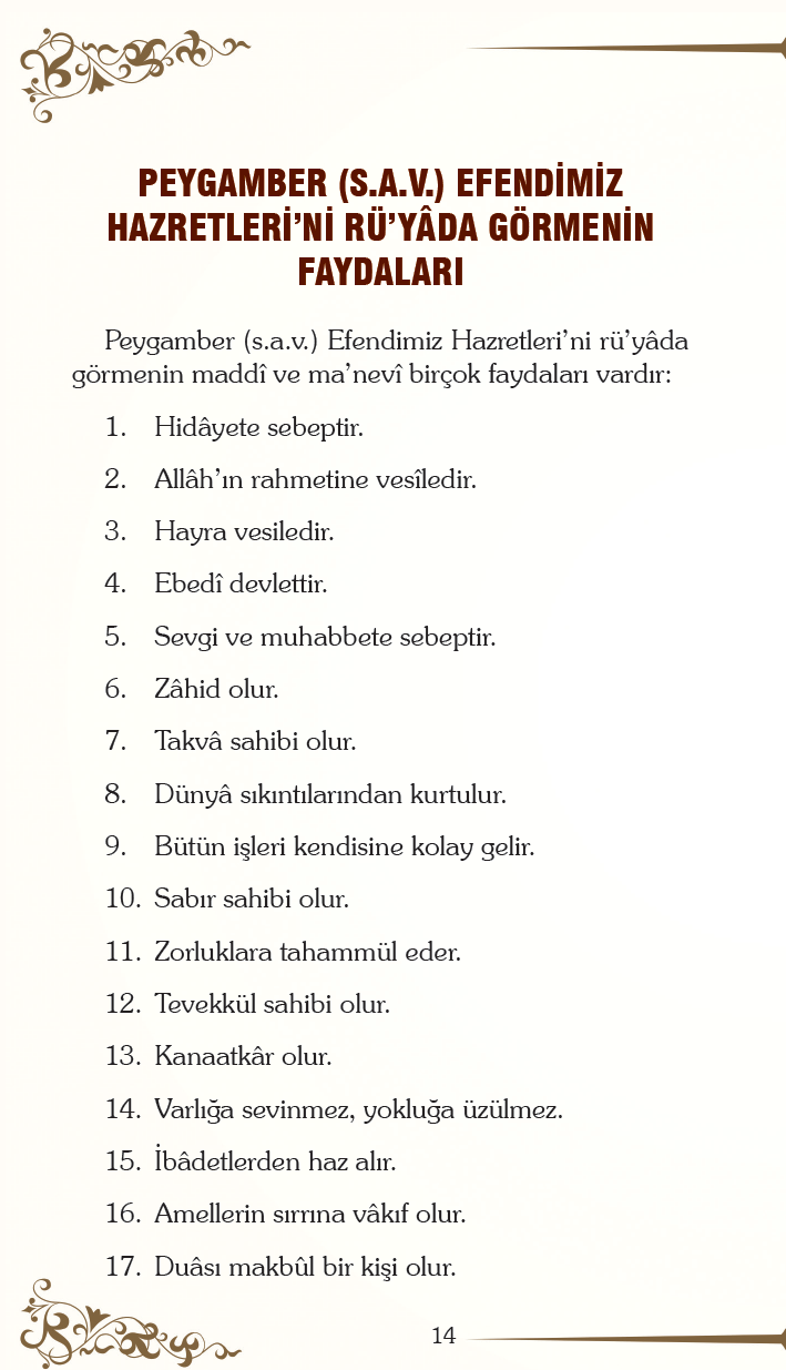 Eserin okuyanlara faydalı olmasını diler, dünya ve ahirette Peygamber (s.a.v.) Efendimiz’e kavuşmamıza vesile olmasını Cenâb-ı Hakk’tan niyâz ederiz.